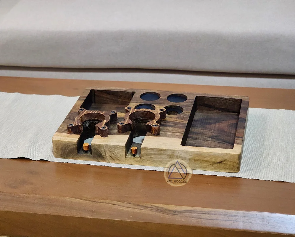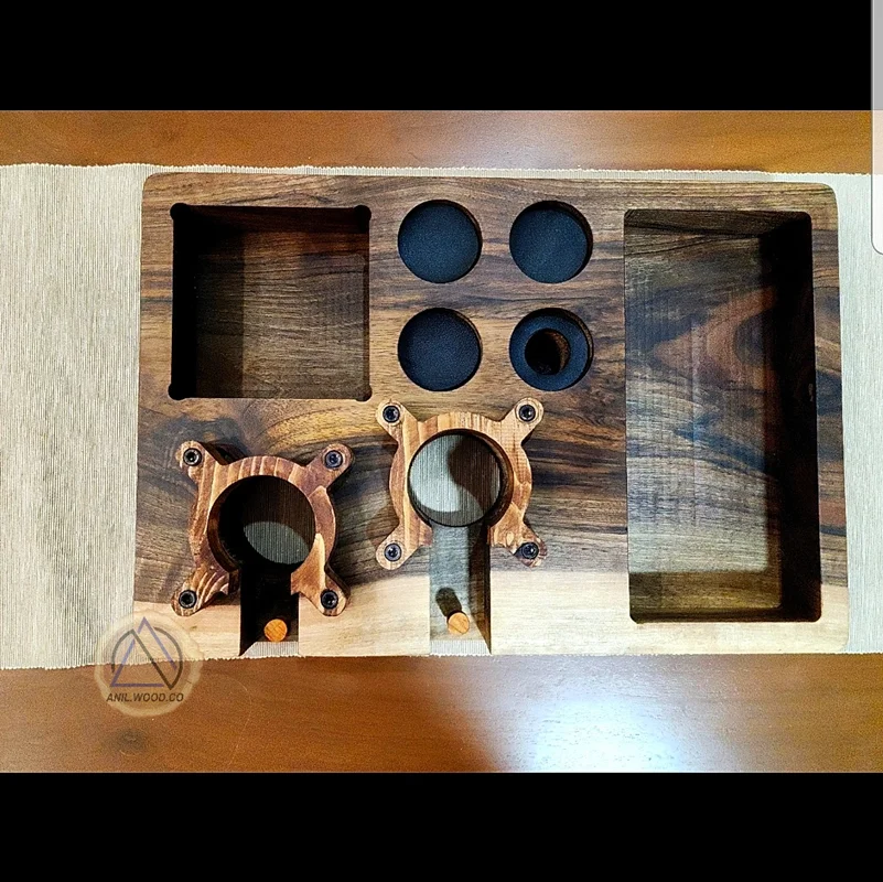 استند برای دستگاه اسپرسو تمامی وسایل دستگاه اسپرسو ساز مثل پرتافیلتر و تمپر و لولر و فانل و نیدل جای مخصوص خودشونو دارن و بسیار زیبا و منظم میشه کافی بارتون همچنین عمل تمپ کردن که بسیار امری مهم برای کیفیت خروجی قهوه هست به راحتی قابل انجام هستشما میتونید با سیلقه خودتون طراحی تغییر بدین یا جنس چوب دیگه ای انتخاب کنید و همچنین اسم خودتون یا لوگو خودتون روی کار حکاکی کنیدهمچنین زیر دسته های پرتافیلتر پیچ چوبی تعبیه شده که به راحتی برای همه دسته های پرتافیلتر قابل تنظیم میباشدهمچنین تمامی محصولات با روغن نانو پوشش داده میشود این روغن پایه طبیعی دارد و استاندارد اتحادیه اروپا برای اعمال روی اسباب بازی کودک را داردهمچنین محصولات چوبی را کامل آب گریز میکند آنیل وود مفتخر است که اولین تولید کننده و طراح محصولات و اکسسوری مربوط به قهوه به صورت تخصصی میباشددر صورت نیاز به راهنمایی پیام بدین نکته( تمامی استند ها بدون تجهیزات میباشد)همچنین نقش طرح رگهاو رنگ هایی محصول ارسالی باتصویر سایت ممکن است اختلاف داشته باشد ابعاد 53 در 36 سانت